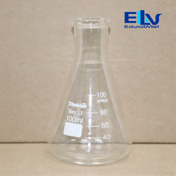 Bình tam giác 100ml là dụng cụ thủy tinh phổ biến trong phòng thí nghiệm hóa học, sinh học và các phòng thực hành trường học. Bình được thiết kế dạng đáy rộng, cổ hẹp, giúp thuận tiện khi lắc trộn dung dịch, thực hiện phản ứng hóa học hoặc gia nhiệt mà hạn chế dung dịch bị bắn ra ngoài.