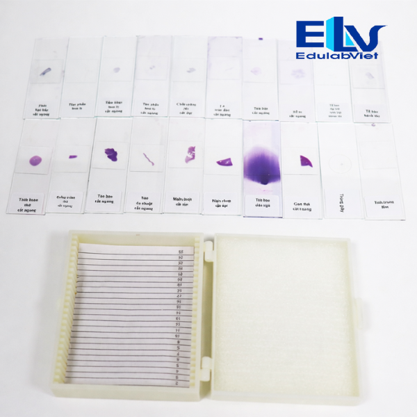 Bộ dụng cụ gồm 20 tiêu bản hiển vi, trong đó:
