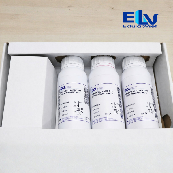Bộ nhuộm huyết học Quick Panoptic là bộ hóa chất chuyên dụng dùng để nhuộm tiêu bản máu và các mẫu tế bào trong xét nghiệm huyết học. Phương pháp nhuộm giúp quan sát rõ cấu trúc tế bào máu, bạch cầu và các thành phần tế bào khác dưới kính hiển vi.
