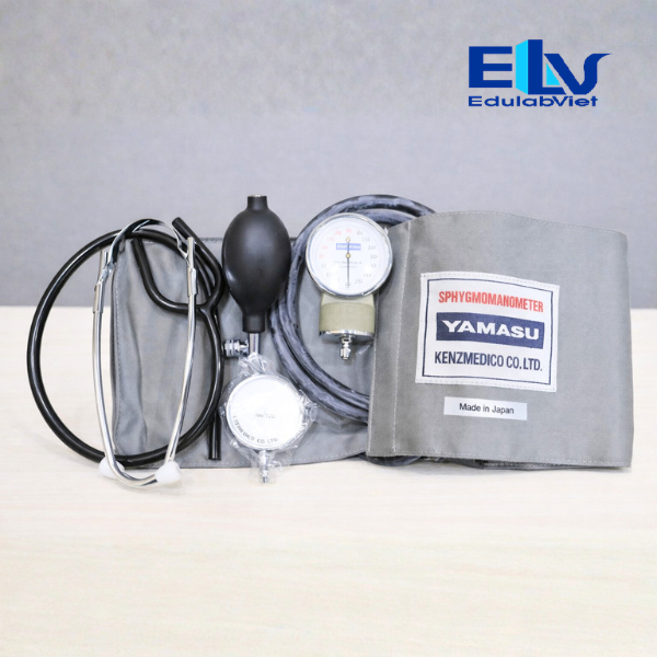 Thiết bị sử dụng máy đo huyết áp cơ kết hợp ống nghe, giúp người học thực hành phương pháp đo huyết áp thủ công và hiểu rõ hơn về nguyên lý hoạt động của hệ tim mạch.