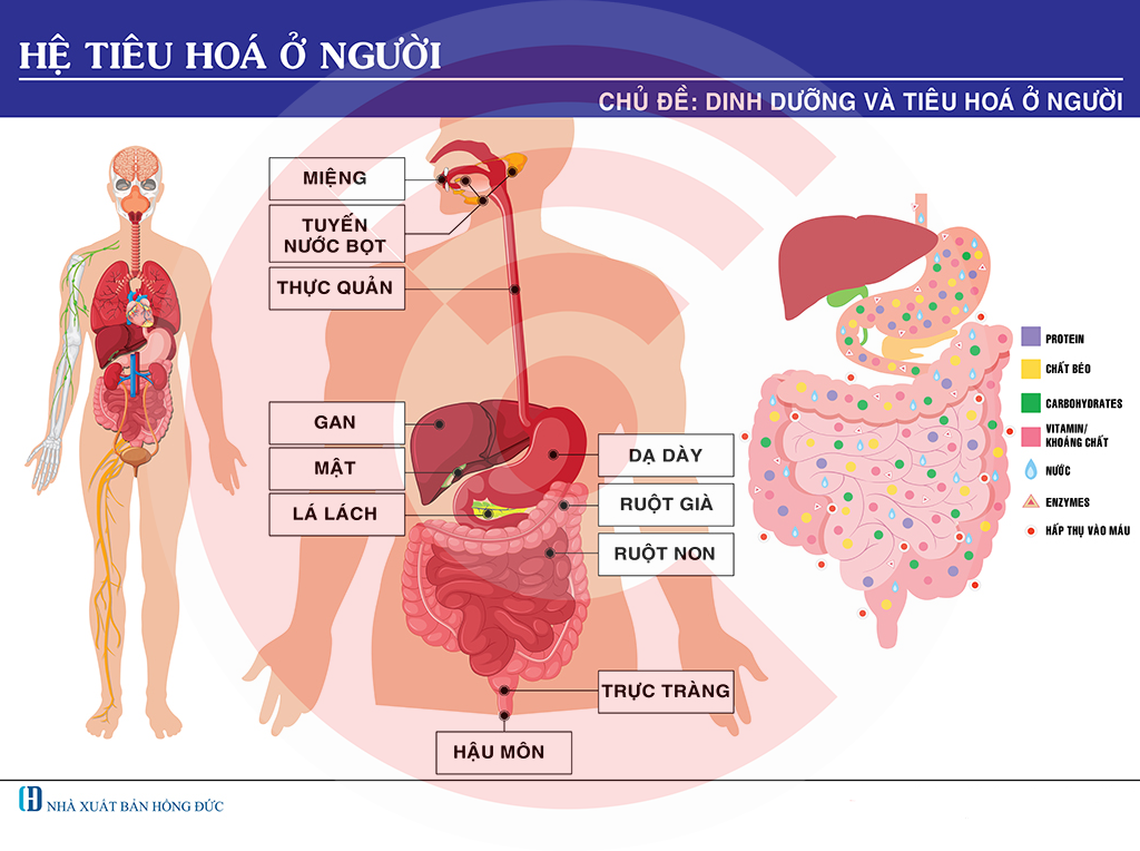 Bên cạnh đó, hệ tiêu hóa còn có sự tham gia của các tuyến tiêu hóa như tuyến nước bọt, gan và tụy.