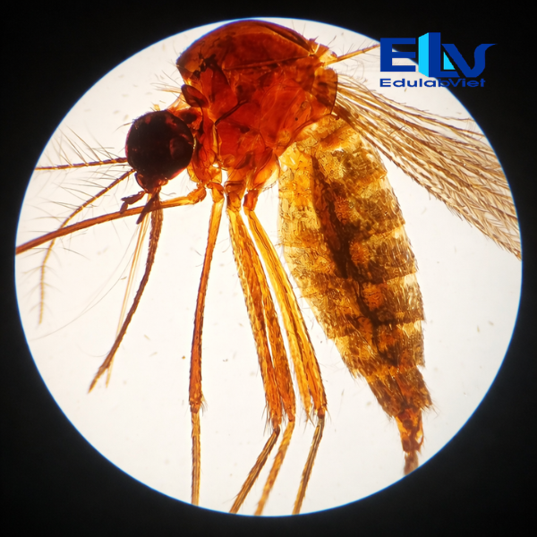 Tiêu bản muỗi Aedes cái cho phép quan sát rõ các đặc điểm hình thái quan trọng như: