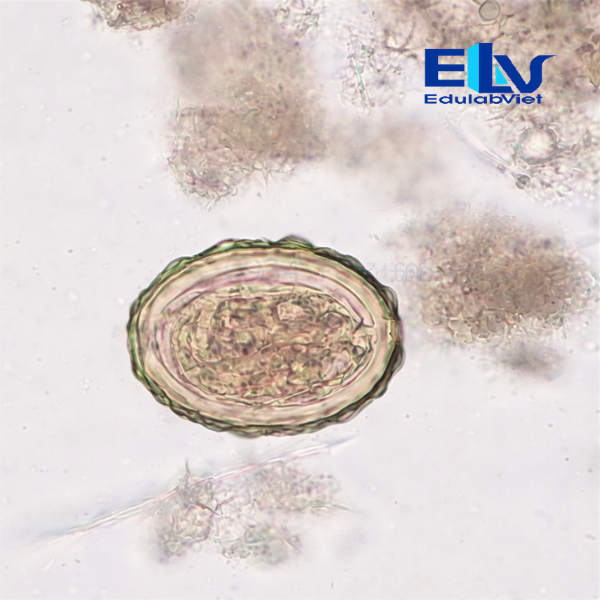 Tiêu bản cho hình ảnh rõ nét, giúp người học dễ dàng phân biệt trứng giun đũa với trứng giun móc, giun tóc và các loại ký sinh trùng đường ruột khác.