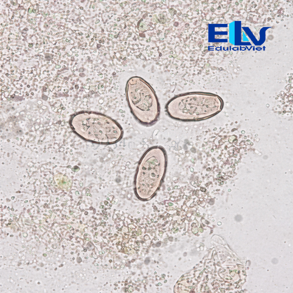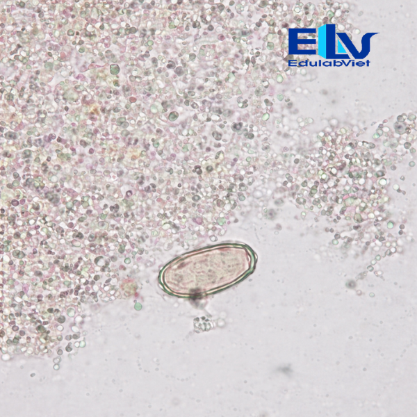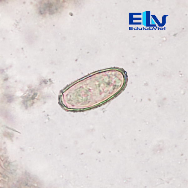 Các mẫu tiêu bản được nhuộm màu rõ nét, giúp người quan sát dễ dàng nhận biết hình dạng của trứng ký sinh trùng dưới kính hiển vi. Tiêu bản đã được gắn lam phủ chắc chắn nhằm bảo vệ mẫu khỏi các tác động từ môi trường bên ngoài và giúp kéo dài thời gian sử dụng.