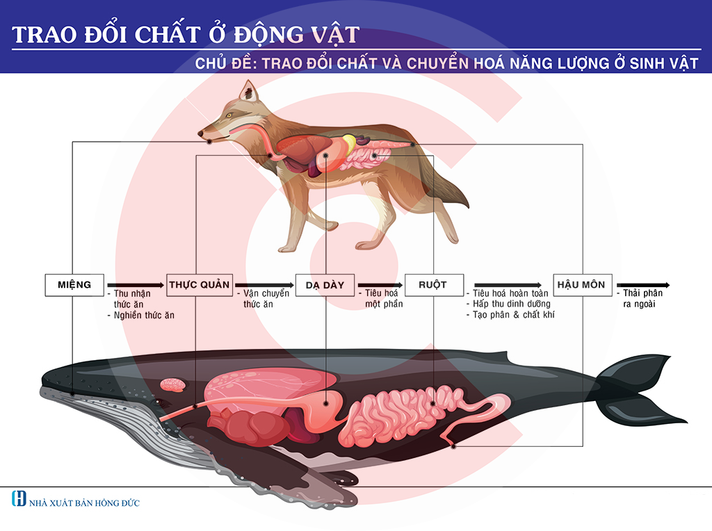 Tranh trao đổi chất ở động vật là công cụ trực quan giúp người học nắm vững quá trình thu nhận và tiêu hóa thức ăn trong ống tiêu hóa, góp phần nâng cao hiệu quả giảng dạy và học tập Sinh học.