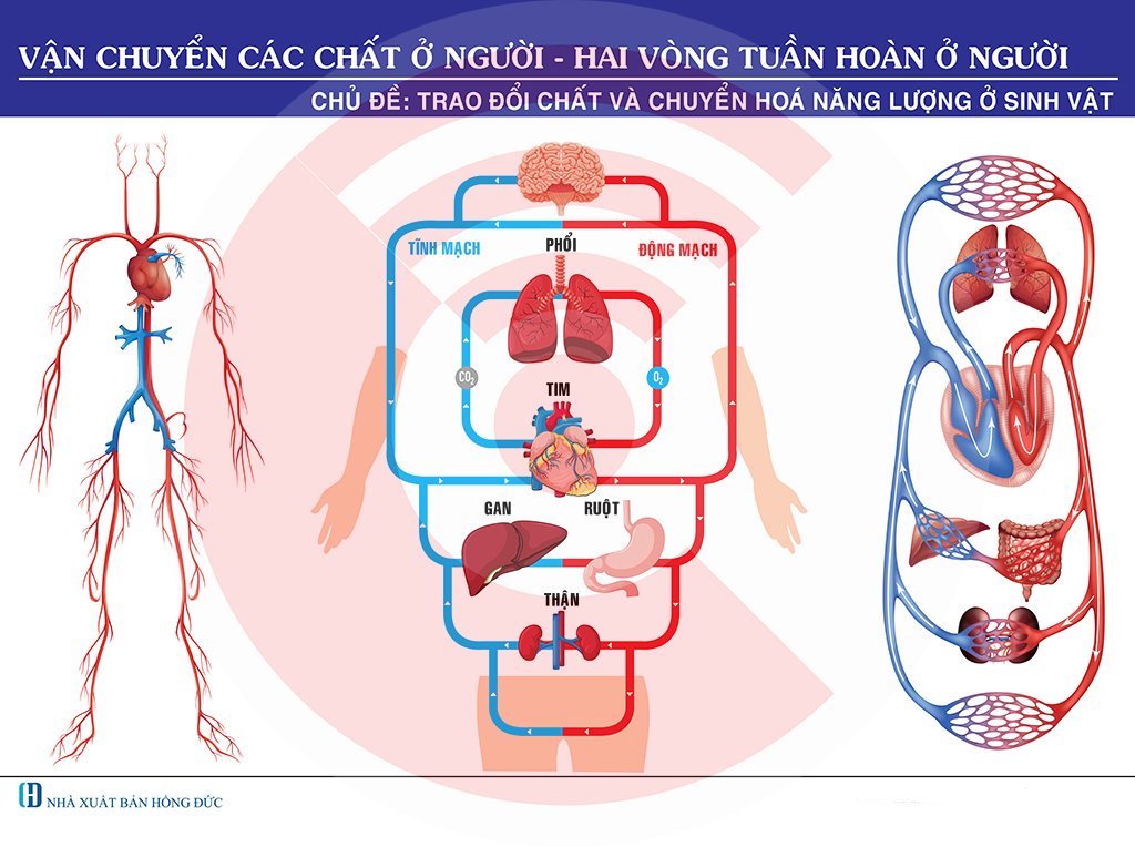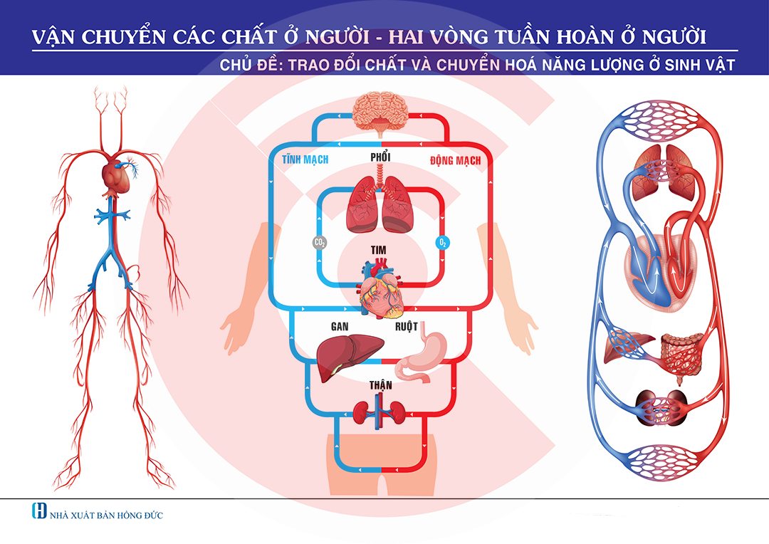 Tranh vận chuyển các chất ở người là công cụ trực quan giúp người học hiểu rõ cơ chế hoạt động của hai vòng tuần hoàn và vai trò của hệ tuần hoàn trong duy trì sự sống.